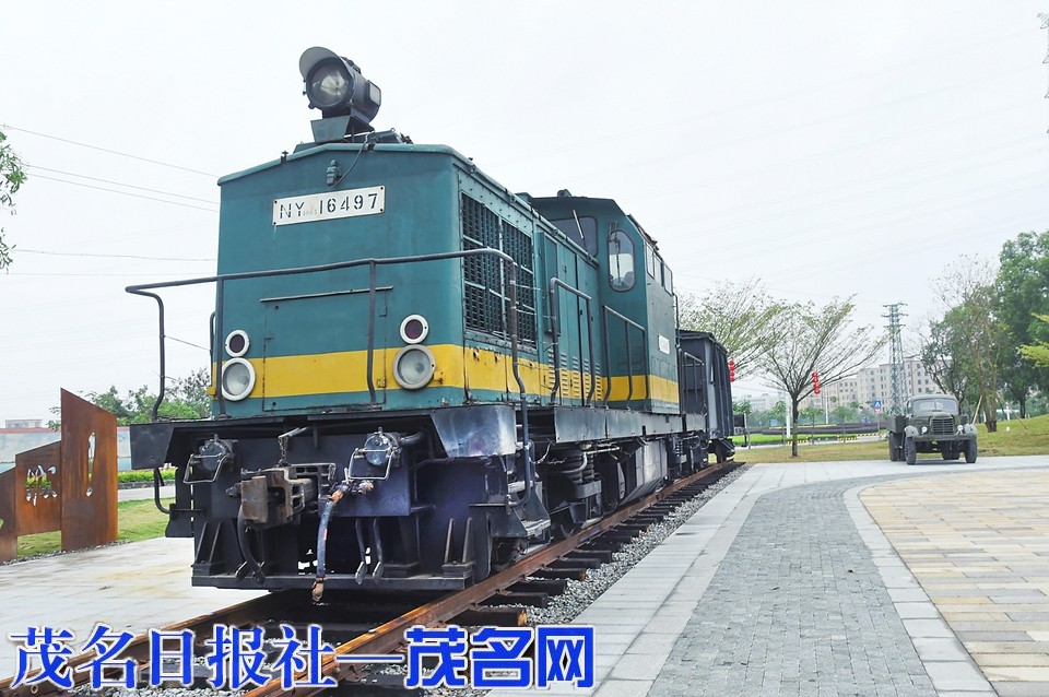 原东德生产的火车头停在好心湖畔。茂名日报社全媒体记者黄信涛摄
