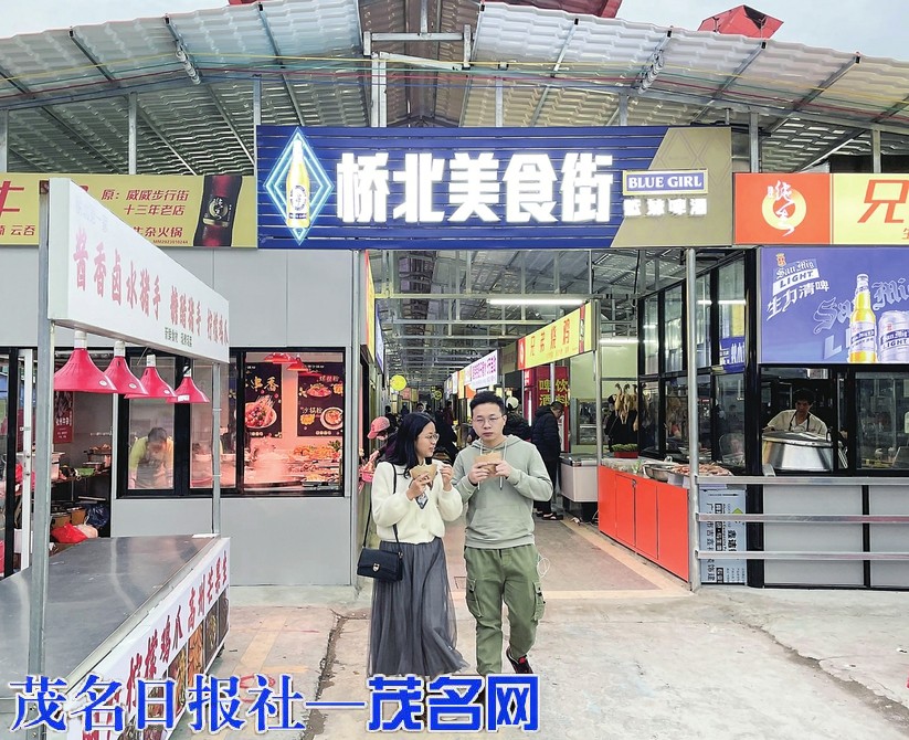 昨日,市区桥北美食街升级改造后重新开业,吸引了不少市民逛街品尝美食。改造后的美食街安装了大型钢结构顶棚,品尝美食环境大为改善。茂名日报社全媒体记者李颜东摄