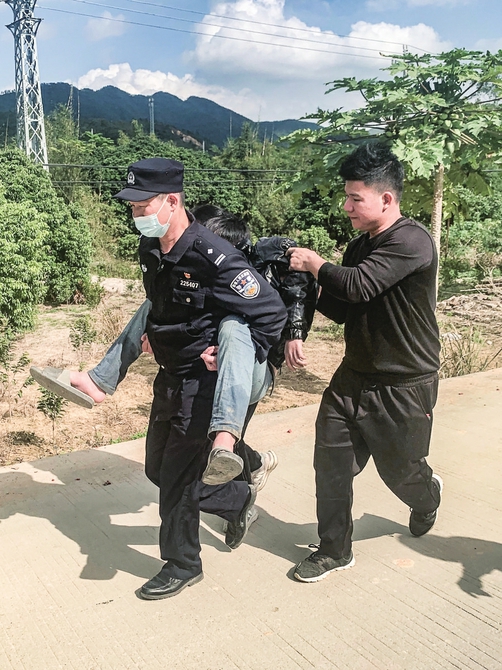 警民合力救助因饥饿瘫软的小徐。通讯员杨金龙摄