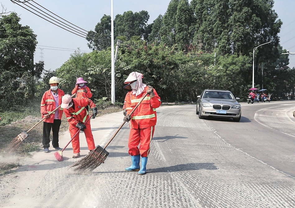 近日,环卫工人节日期间坚守岗位,清扫茂名露天矿生态公园周边道路,为游客创造干净整洁的出行环境。茂名日报社全媒体记者岑稳摄