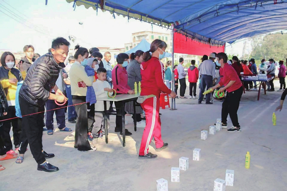 在新坡村委会石山脚村的党建公园和文体广场,数百名村民参加村举办的迎新春趣味运动会。现场人头攒动,欢声一片。
