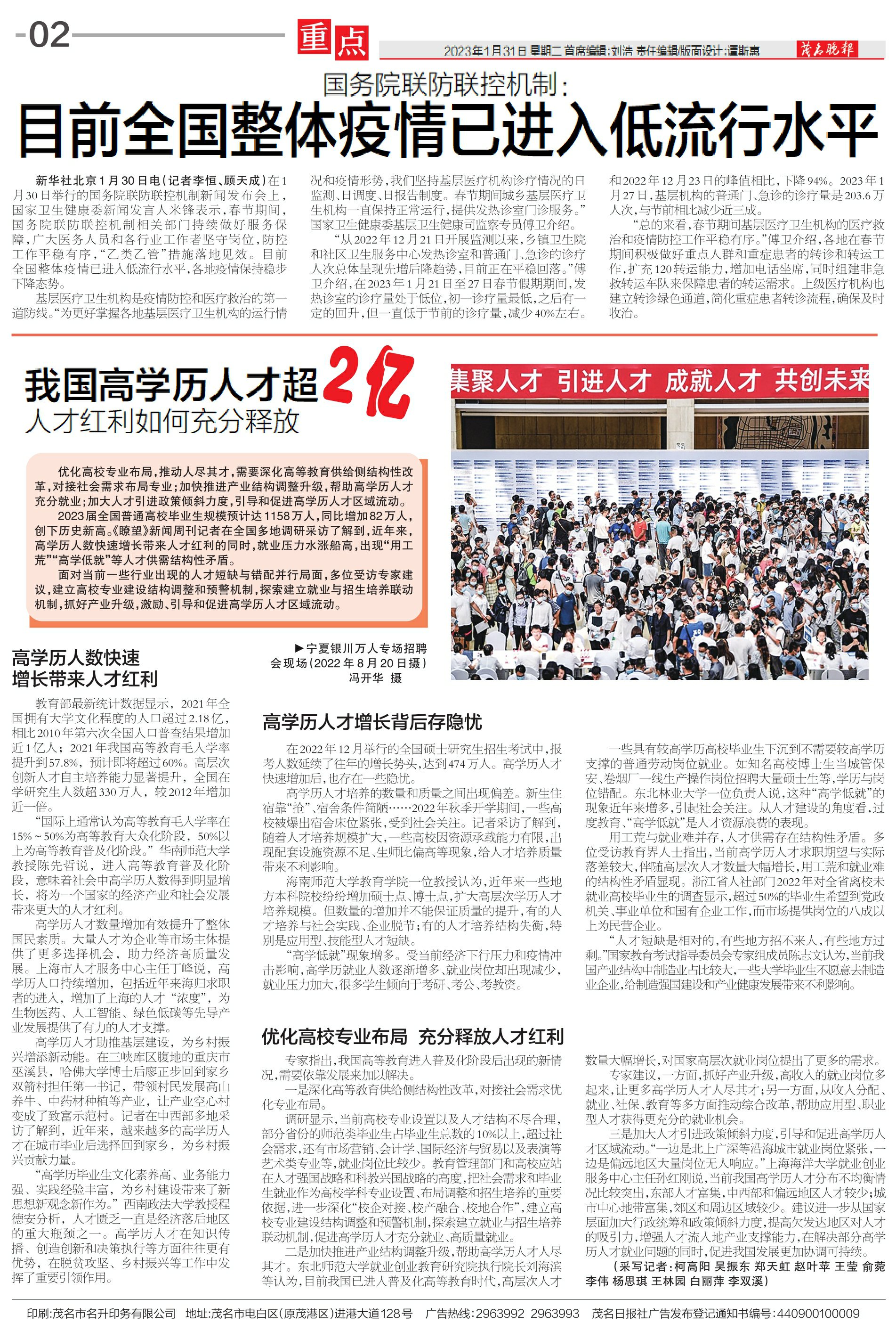 国务院联防联控机制:目前全国整体疫情已进入低流行水平