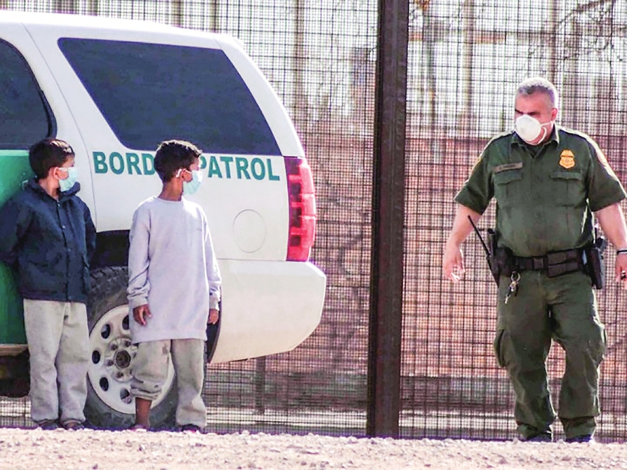 这张2021年3月27日在墨西哥华雷斯拍摄的照片显示,两名来自危地马拉的移民儿童在跨越美墨边境的里奥格兰德河后,等待接受美国边境巡逻队人员的处理。新华社发(戴维·佩纳多摄)