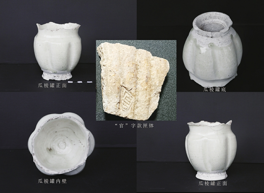 宁夏贺兰苏峪口瓷窑遗址出土的瓜棱罐与匣钵(资料照片)。
