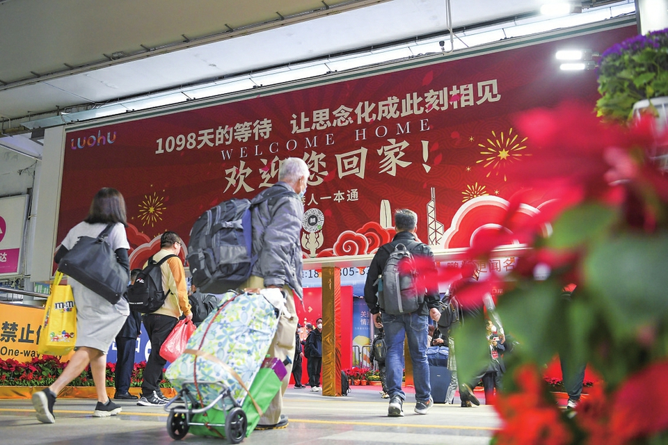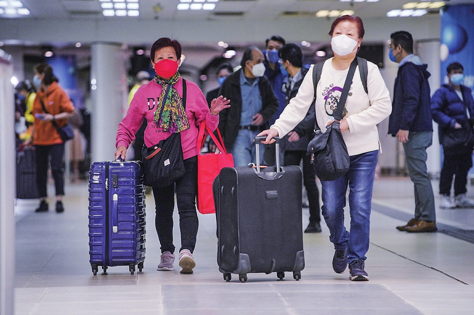 2月6日,旅客通过罗湖口岸抵达深圳。 新华社记者梁旭摄