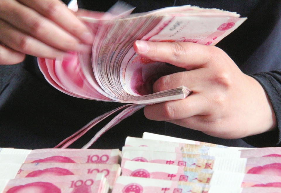 图为一名银行工作人员在点钞。 (图片来源:新华社)