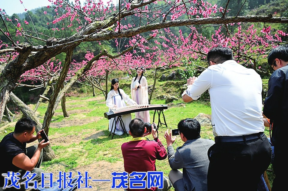 茂名晚报讯记者何康源郭瑞祥群山环抱中,数十亩鹰嘴桃花迎春怒放,一片粉红,两名身穿汉服弹古筝的少女静坐桃花林下,用手指拨动春天的琴弦,如诗如画,宛如“三生三世十里桃花”的意境,引得路人驻足流连,让摄影师大喊精彩。