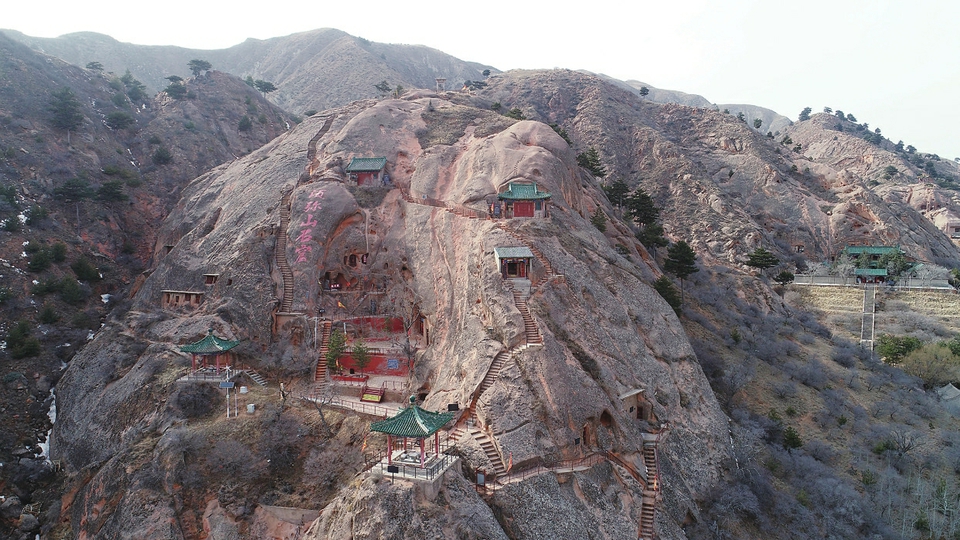 这是宁夏须弥山石窟局部外景(2月28日摄,无人机照片)。