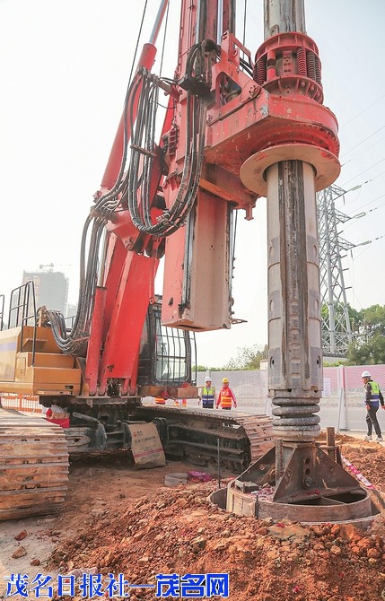 海洋大道立交项目首桩开钻现场。茂名日报社全媒体记者岑稳摄