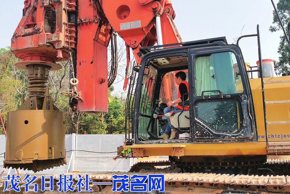 大型施工机械在现场施工。茂名日报社全媒体记者岑稳摄