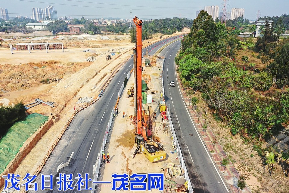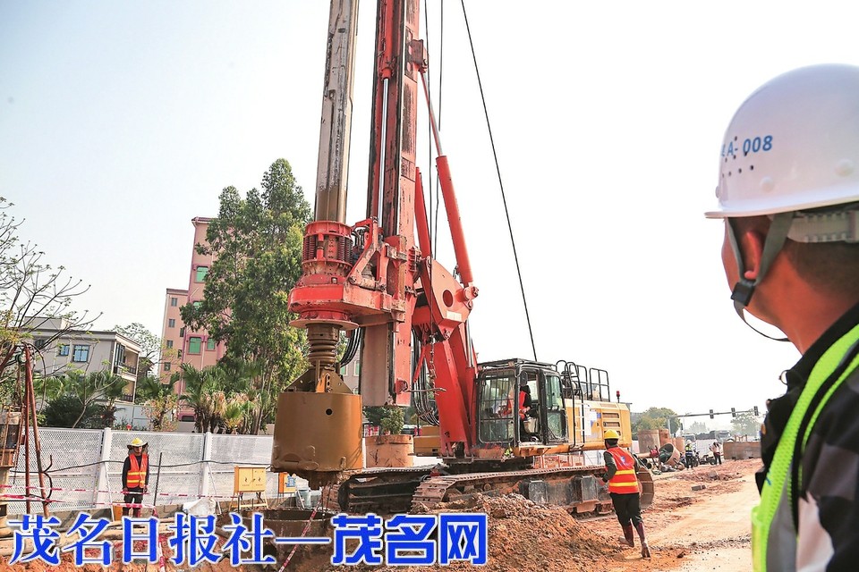 海洋大道立交项目首桩开钻。茂名日报社全媒体记者岑稳摄
