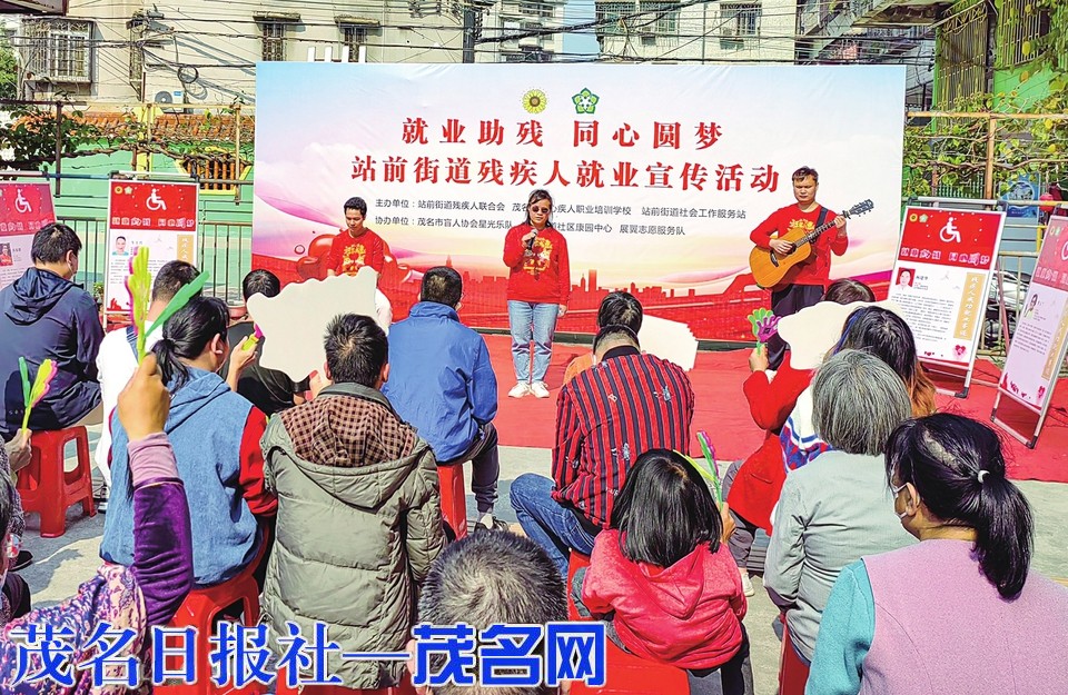3月2日,茂南区站前街道社会工作服务站在市爱心残疾人职业培训学校开展“就业助残同心圆梦”残疾人就业宣传活动。活动现场通过残疾人就业政策宣传,残疾人才艺表演,残疾人成功就业事迹展等形式多样的内容,帮助和促进残疾人转变就业观念,有效地融入社会就业。茂名日报社全媒体记者岑稳通讯员杨水正摄