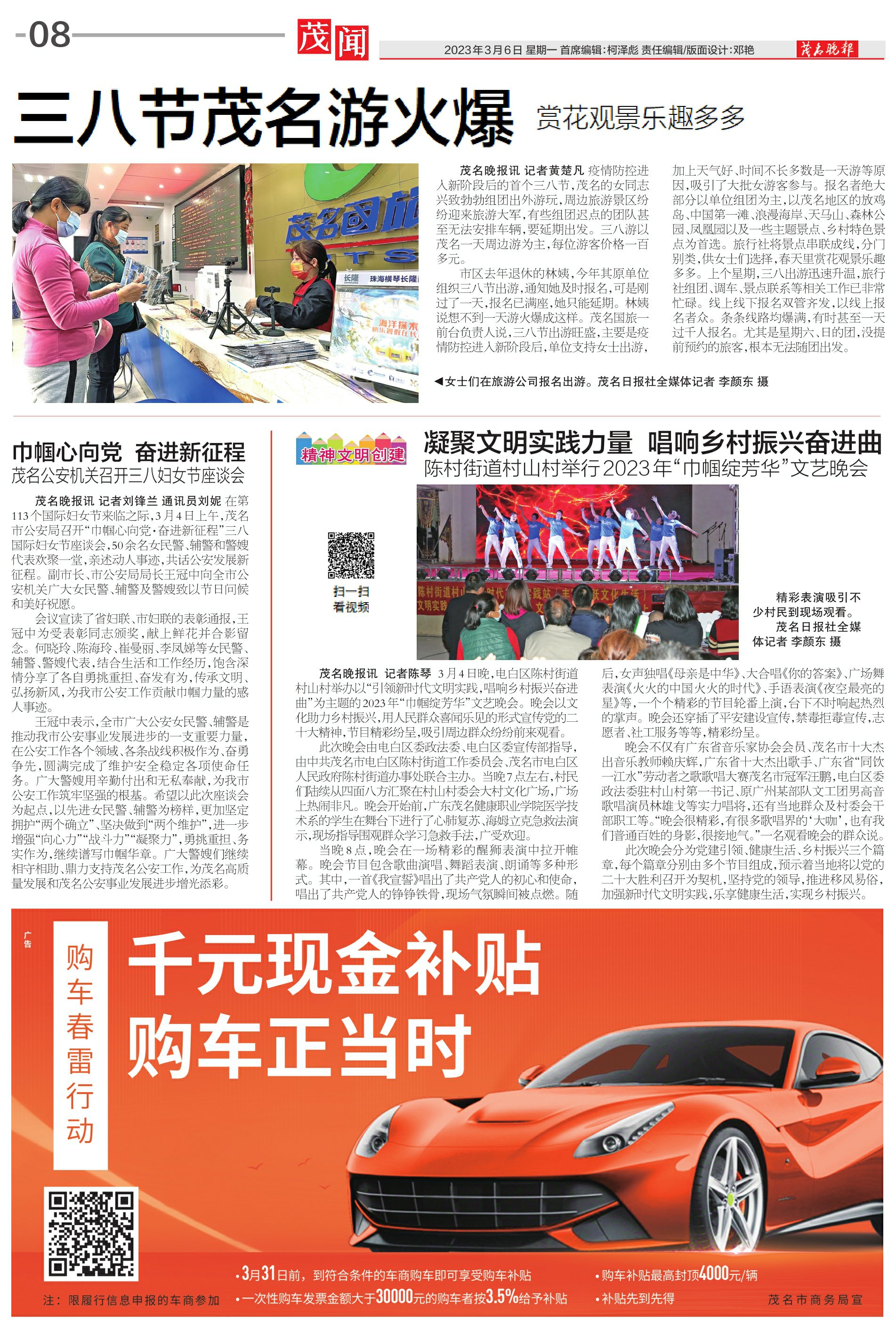 茂名晚报讯记者黄楚凡疫情防控进入新阶段后的首个三八节,茂名的女同志兴致勃勃组团出外游玩,周边旅游景区纷纷迎来旅游大军,有些组团迟点的团队甚至无法安排车辆,要延期出发。三八游以茂名一天周边游为主,每位游客价格一百多元。