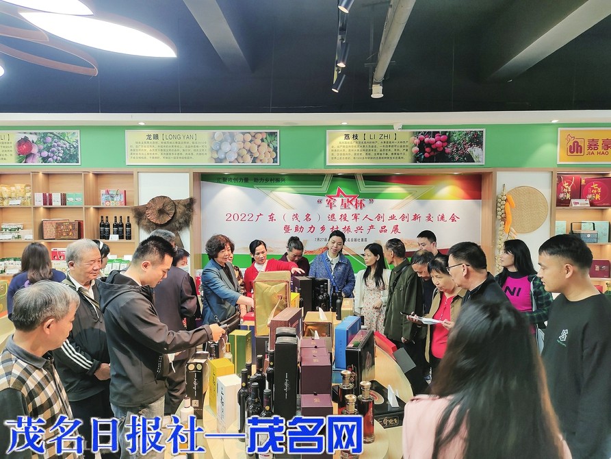 军休干部参观茂名退役军人创业创新产品展示交流平台。