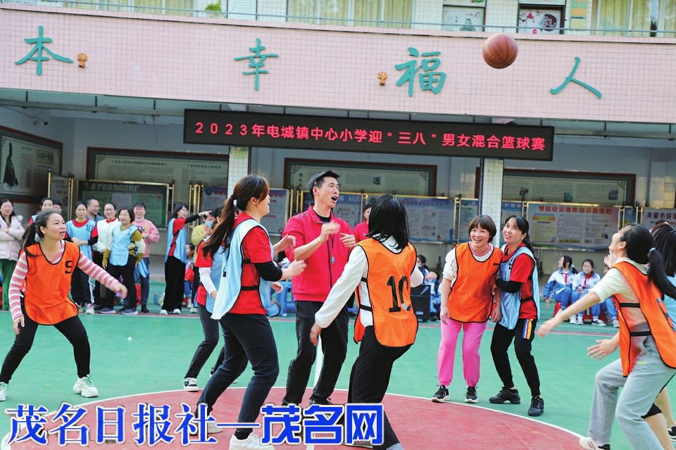 为庆祝“三八”国际妇女节,丰富全体教师的精神生活和业余活动,以便教师们提高工作效率,增强团队意识,滨海新区电城镇中心小学举行了唱红歌比赛、男女混合趣味篮球赛、拔河比赛、外出采风等一系列活动,让大家过一个充满激情、愉快、有意义的节日。图为男女混合趣味篮球赛。茂名晚报通讯员严春雄摄