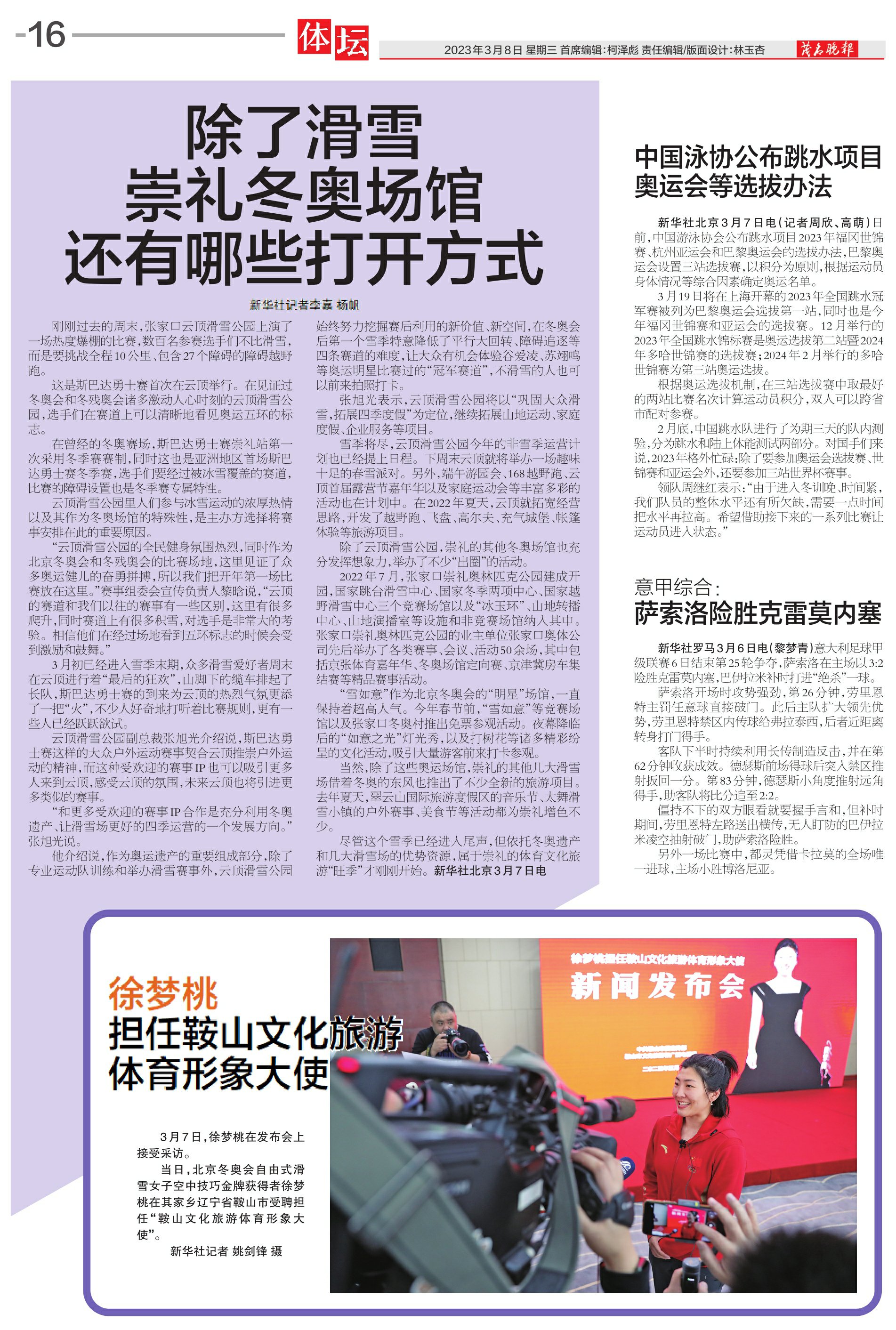 徐梦桃担任鞍山文化旅游体育形象大使