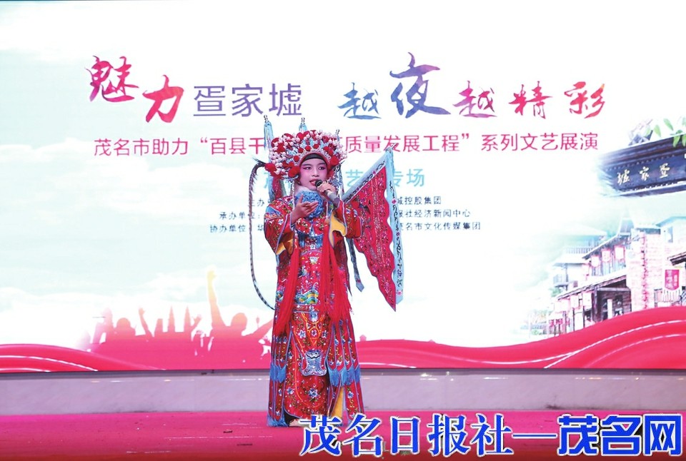 茂名晚报讯 昨晚,以“魅力疍家墟 越夜越精彩”为主题的茂名市助力“百县千镇万村高质量发展工程”系列文艺展演茂名少儿艺术专场在晏镜·疍家墟年例广场精彩上演。本次文艺展演共有15个节目,通过歌舞表演、乐器演奏、相声、朗诵等多种节目形式,为观众带来一场“文化大餐”。