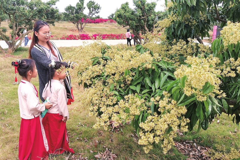 市民欣赏满园盛开的荔枝花。茂名日报社全媒体记者岑稳摄