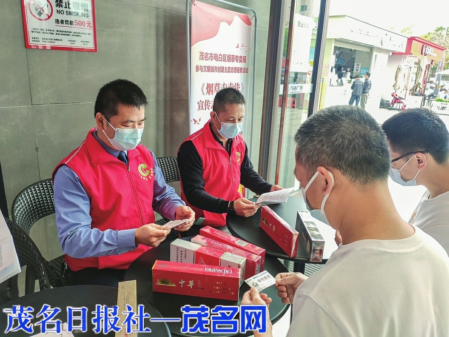 茂名晚报讯 记者池榕为助力我市创建全国文明城市工作,提升烟草专卖法律法规社会知晓度,15日上午,省文明单位茂名市电白区烟草专卖局在电白万达广场举行《烟草专卖法》宣传志愿服务活动,用接地气的志愿服务方式讲解法律和假烟鉴别知识,受到现场群众的一致好评。