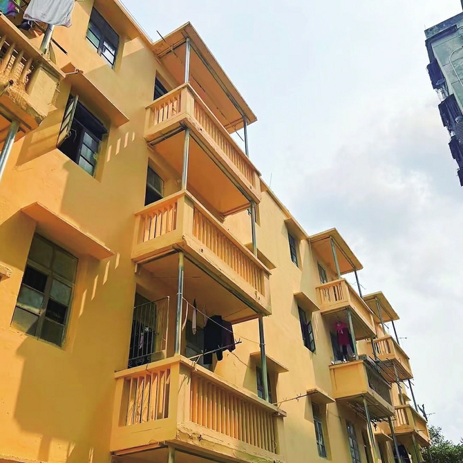 红旗街道老旧小区改造项目逐步推进,居民楼外立面粉刷一新。茂名晚报记者李仁娟摄