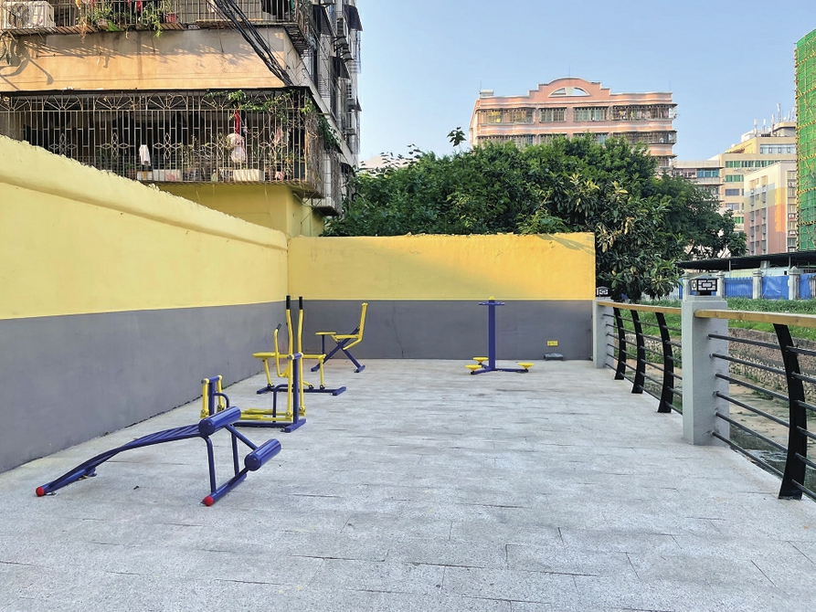 新兴五街一角改造后成了健体乐园。 茂名晚报记者李君平摄