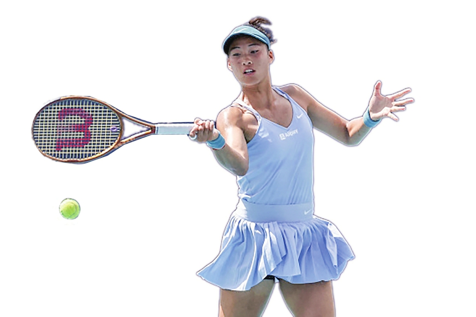 3月25日,郑钦文在比赛中回球。新华社/路透