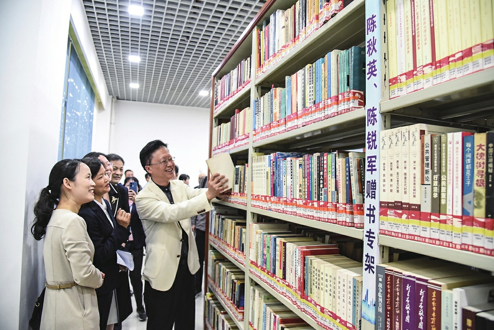 陈锐军教授向嘉宾介绍捐赠图书情况。 茂名日报社全媒体记者黎雄摄