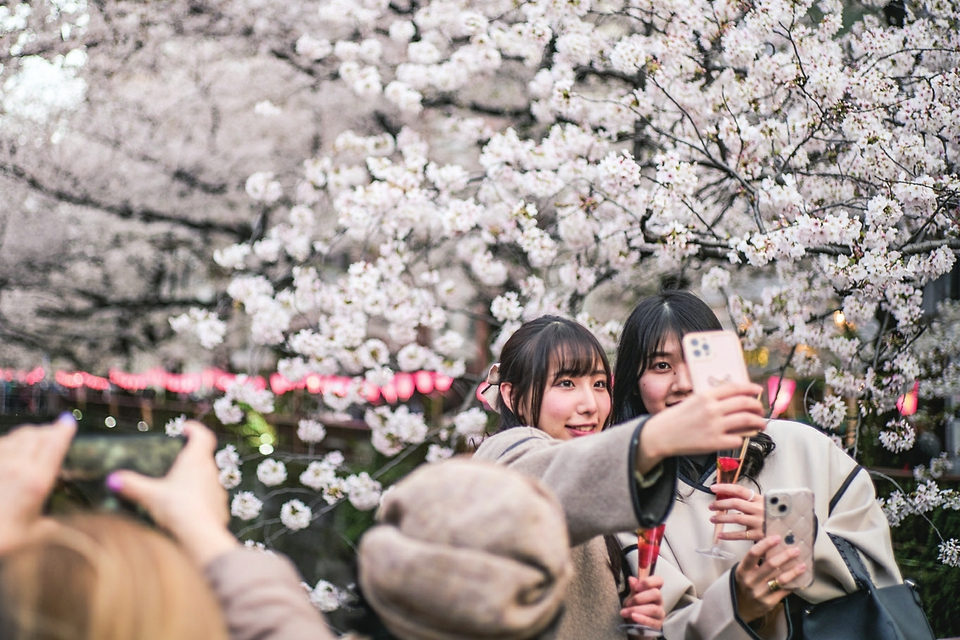 近日,东京进入樱花季,不少民众来到东京著名赏樱点目黑川观赏樱花。