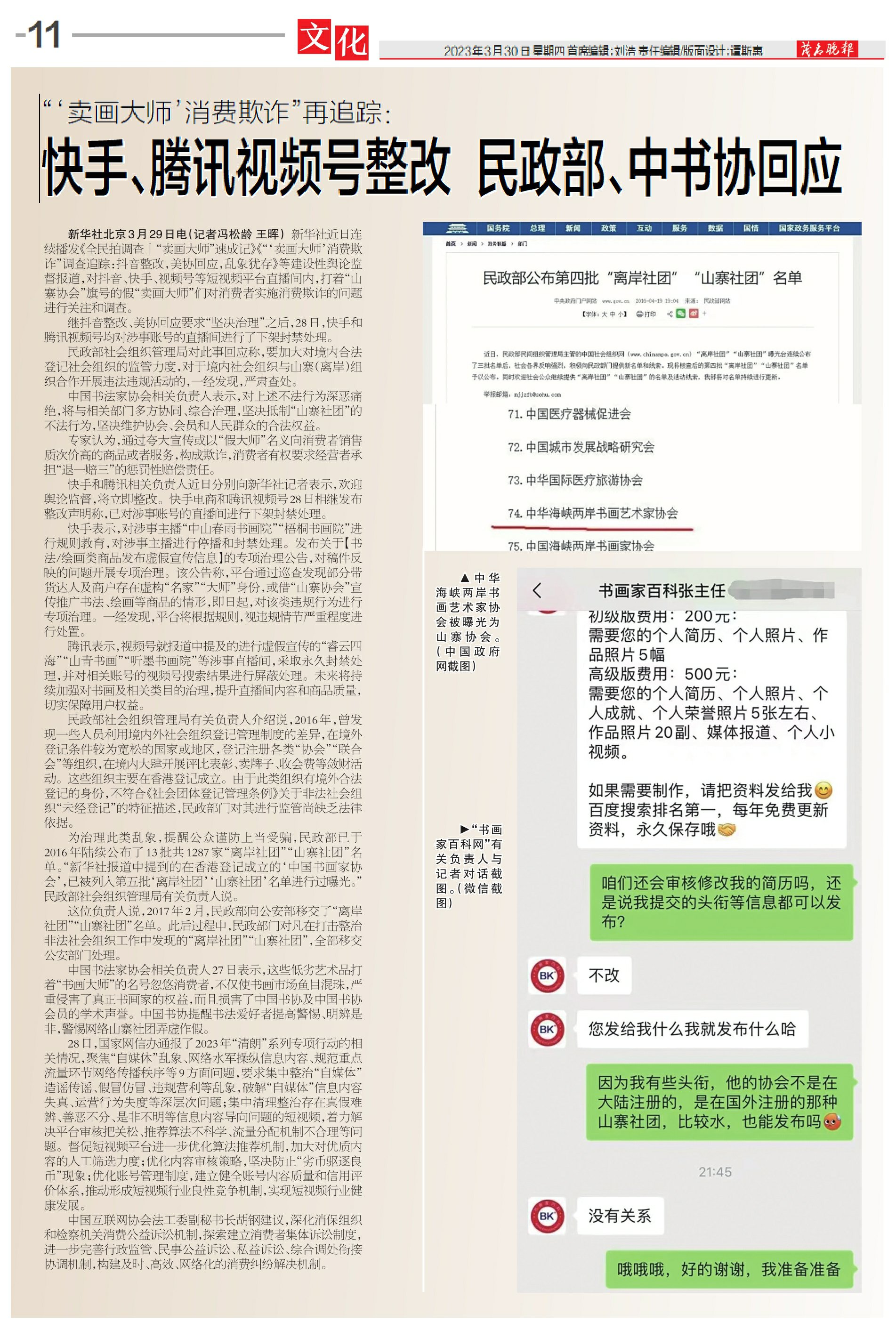 快手、腾讯视频号整改 民政部、中书协回应