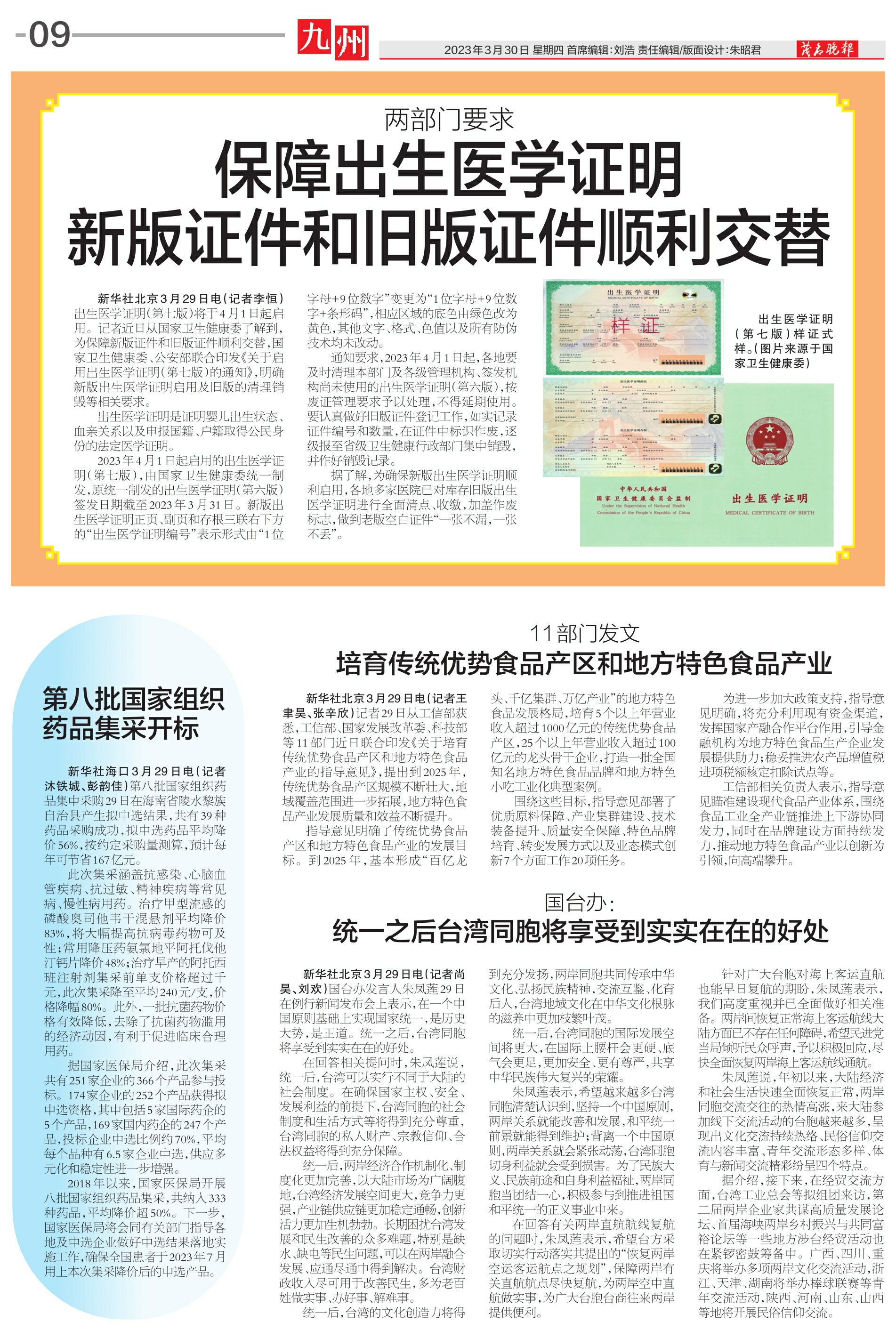 保障出生医学证明新版证件和旧版证件顺利交替