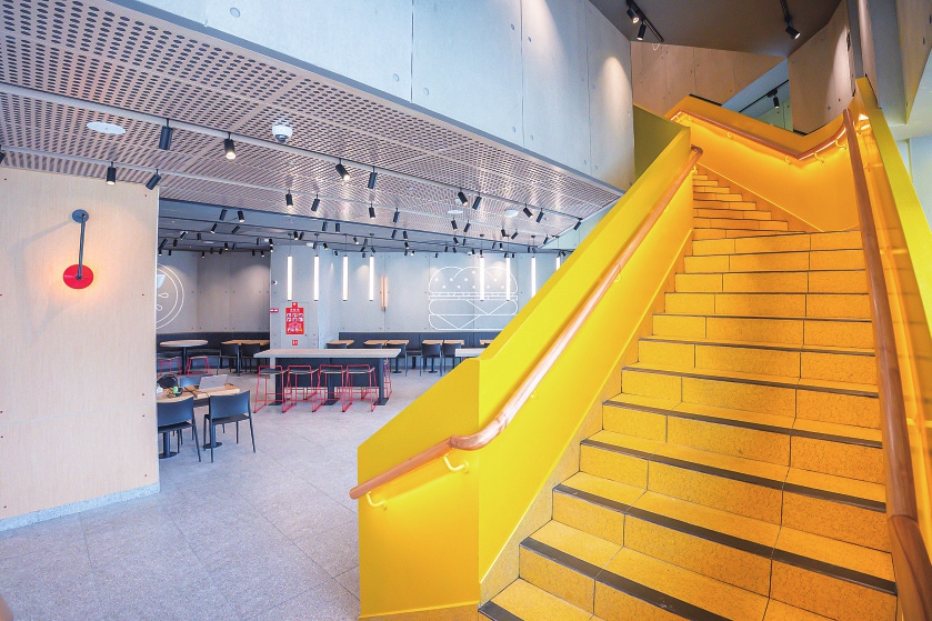 餐厅以“阳光黄色”旋转楼梯为视觉中心,展现全新风格旗舰店的能量和活力。