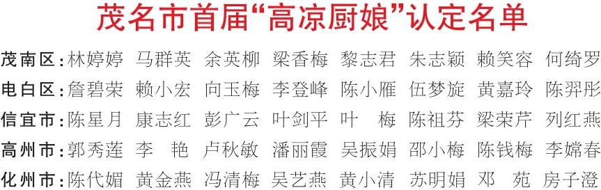 关于茂名市首届“高凉厨娘”认定名单的公示
