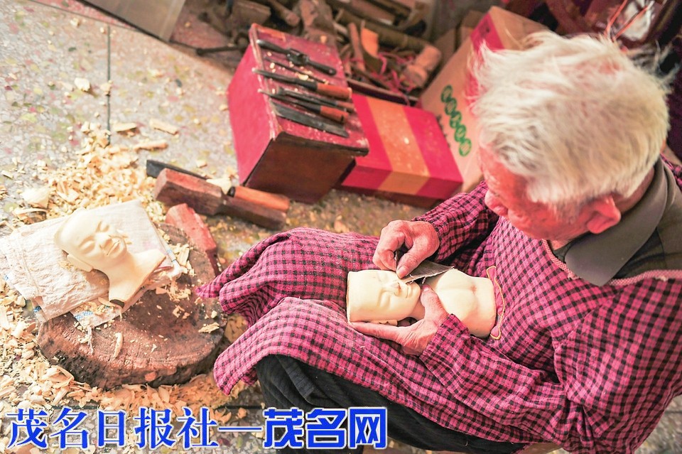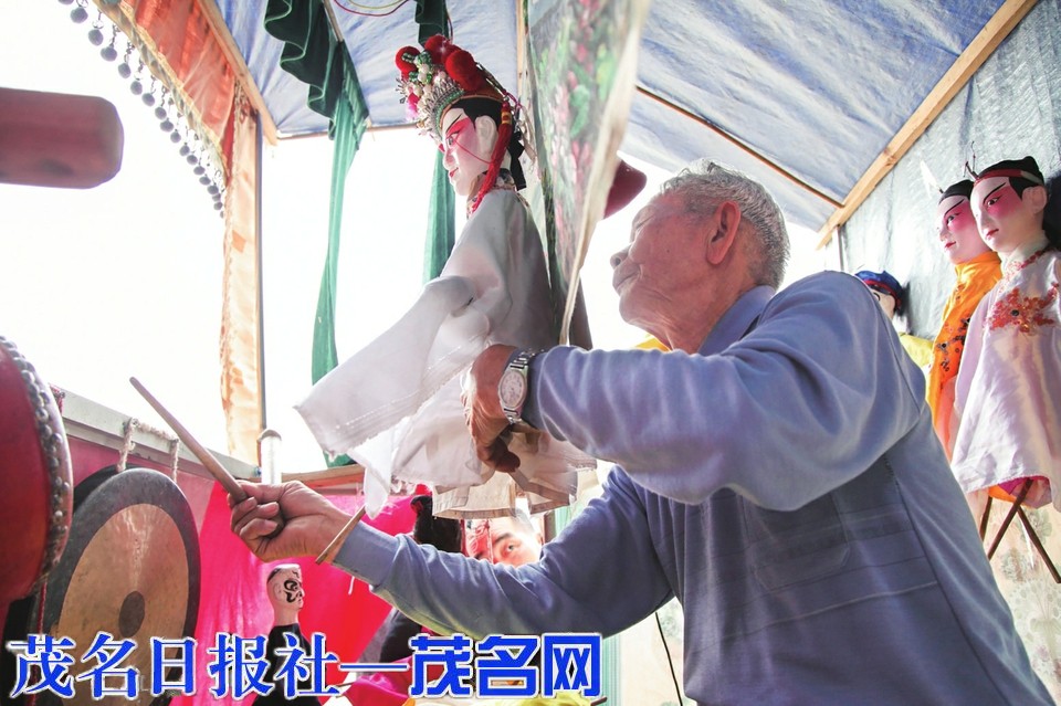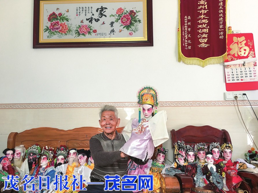 民间艺人朱兆庚是非物质文化遗产项目高州木偶戏传承人之一,在家排行第三,大家又叫他朱三叔。