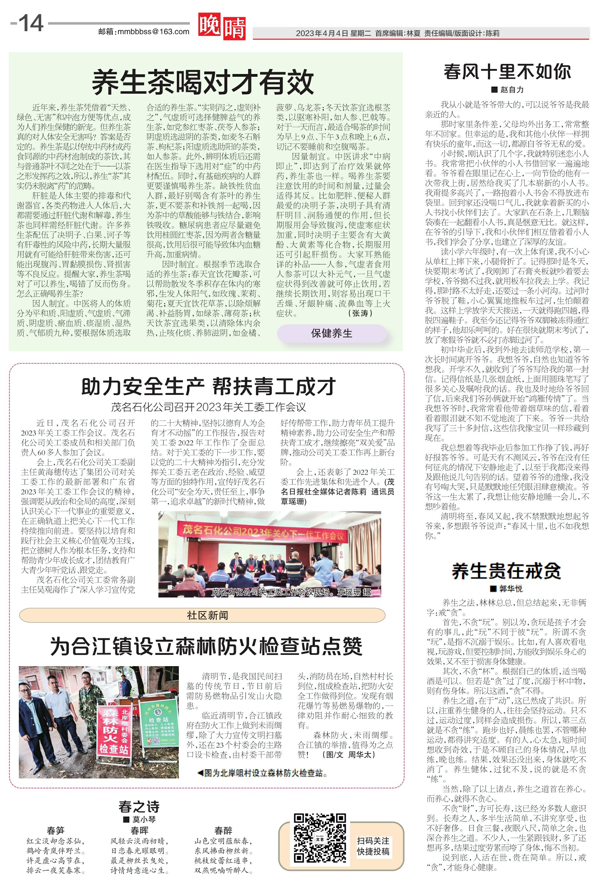 茂名石化公司关工委常务副主任吴观海作了“深入学习宣传党的二十大精神,坚持以德育人为企育才不动摇”的工作报告,报告对关工委2022年工作作了全面总结。对于关工委的下一步工作,要以党的二十大精神为指引,充分发挥关工委五老在政治、经验、威望等方面的独特作用,宣传好茂名石化公司“安全为天,责任至上,事争第一,追求卓越”的新时代精神,做好传帮带工作,助力青年员工提升精神素养,助力公司安全生产和帮扶青工成才,继续擦亮“双关爱”品牌,推动公司关工委工作再上新台阶。