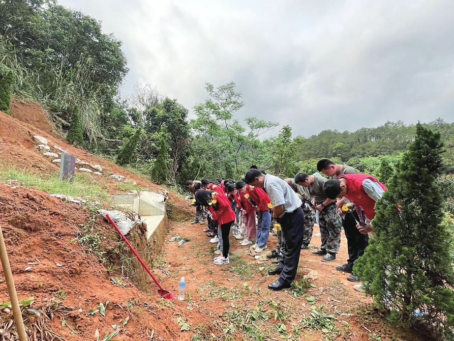 党员干部师生祭扫烈士墓。茂名晚报通讯员彭炎 摄