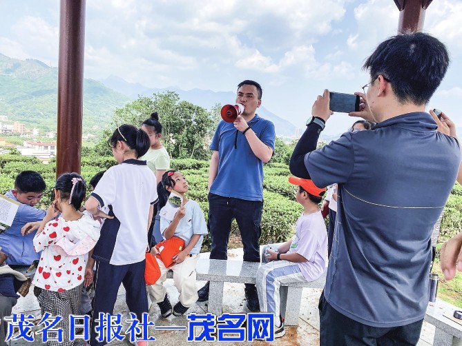 “孩子们,这就是爸爸妈妈平时喝的茶。”茶田里,在高州市出水窿茶厂工作人员的介绍下,孩子们穿梭于一棵棵茶树间,用心观察茶树,了解茶树的生长习性与特点。孩子们一边学习知识,与家长亲密互动,一边仔细聆听关于出瑞龙茶的小故事。在明星村委会工作人员带领了,亲子团队参观了“明星村党建主题茶园”。