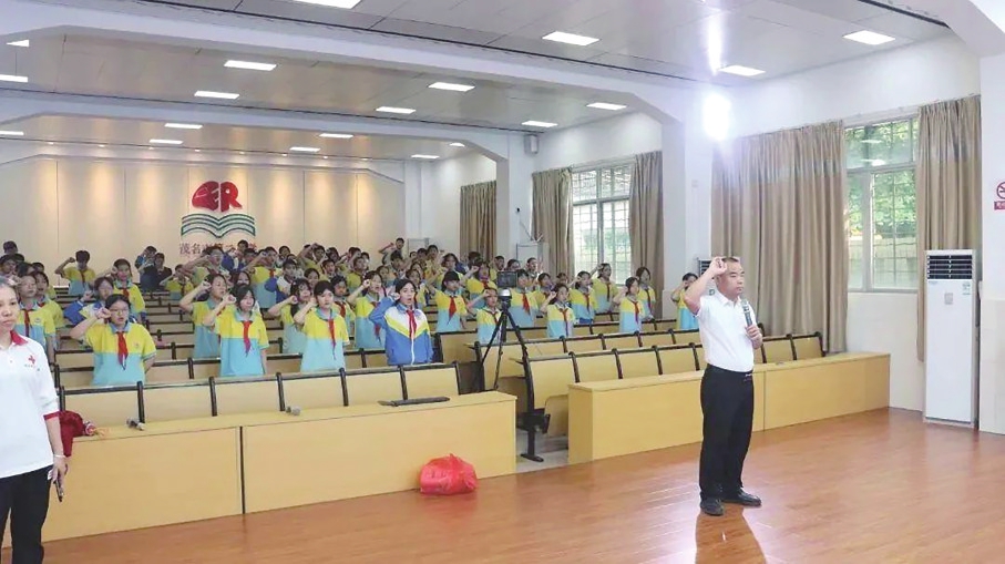 接着,学校党支部书记、校长林仲斌讲话,强调防溺水的重要性,并对现场互动时同学们对防溺水的自救和救援认知程度给予表扬,说明同学们近年对防溺水安全知识教育入心入脑,并对同学们提出了三点要求:一要提高思想认识,时刻保持高度警惕,远离危险。二要多种形式学习,将安全知识牢记心中。三要学以致用,将平时所学融化到实践中,关键时刻懂得应用。最后,校长带领大家进行宣誓,并进行集体签名。