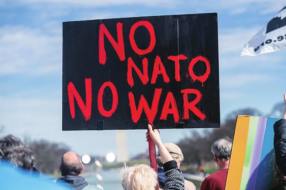 2月19日,在美国首都华盛顿,一名抗议者手举标语在林肯纪念堂前参加集会。“不要更多战争!不要更多战争!不要更多战争!”美国上千名反战人士19日下午在位于首都华盛顿市的林肯纪念堂前举行集会,齐声高喊。新华社记者刘杰摄