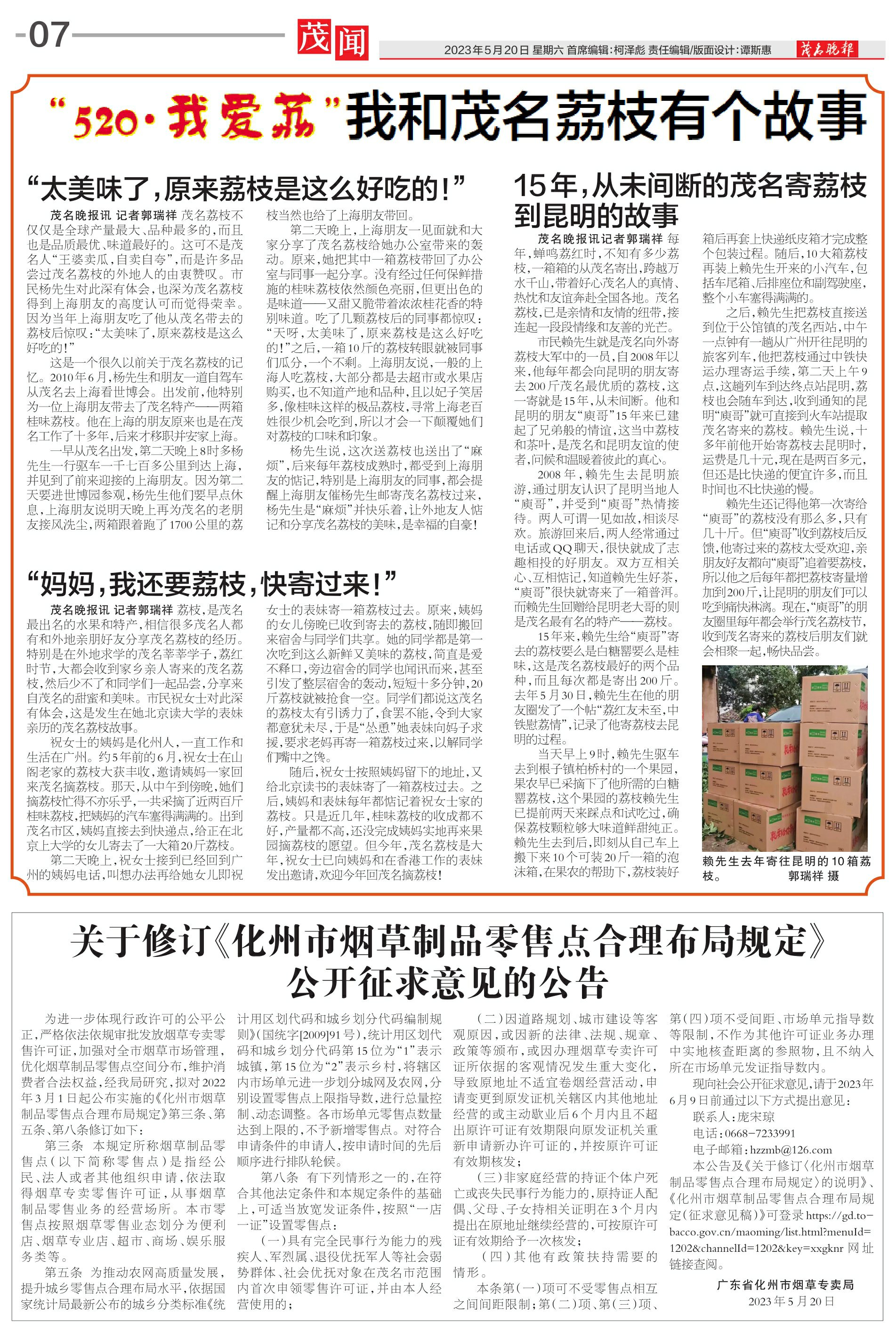 本公告及《关于修订〈化州市烟草制品零售点合理布局规定〉的说明》、《化州市烟草制品零售点合理布局规定(征求意见稿)》可登录https://gd.tobacco.gov.cn/maoming/list.html?menuId= 1202&channelId=1202&key=xxgknr网址链接查阅。