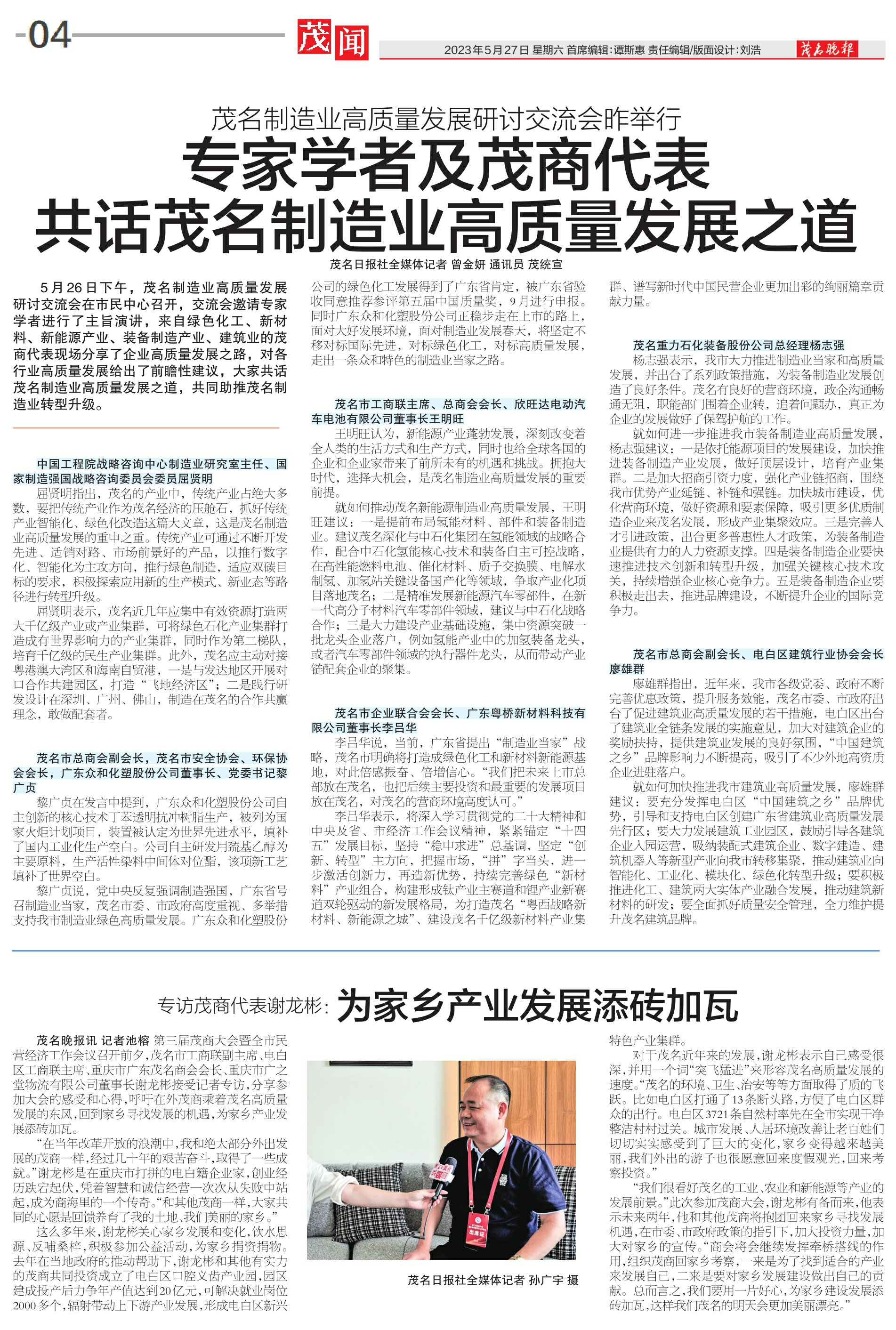 专访茂商代表谢龙彬:为家乡产业发展添砖加瓦