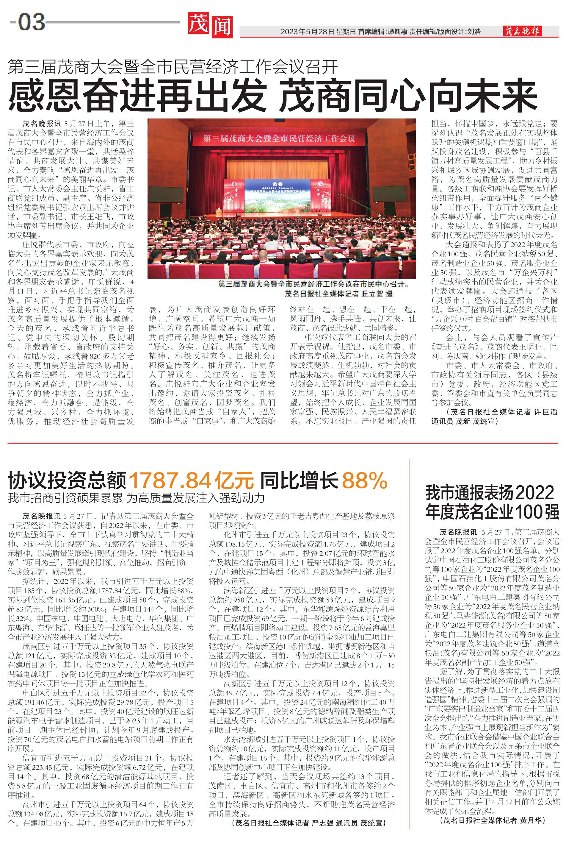 我市通报表扬2022年度茂名企业100强