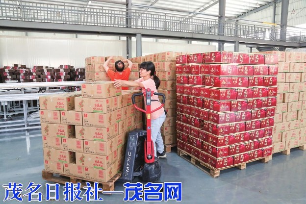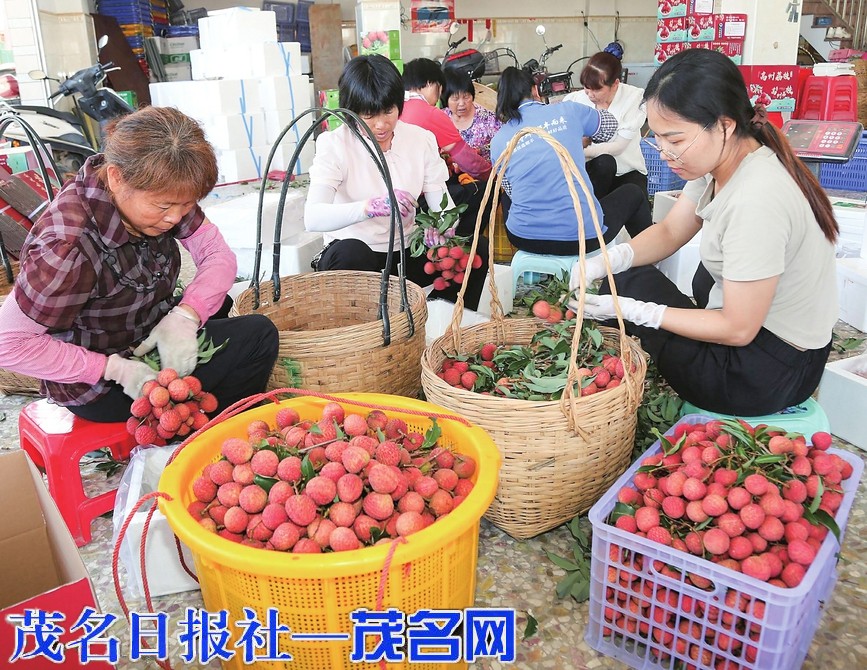 工人在精心包装荔枝。茂名日报社全媒体记者李颜东摄