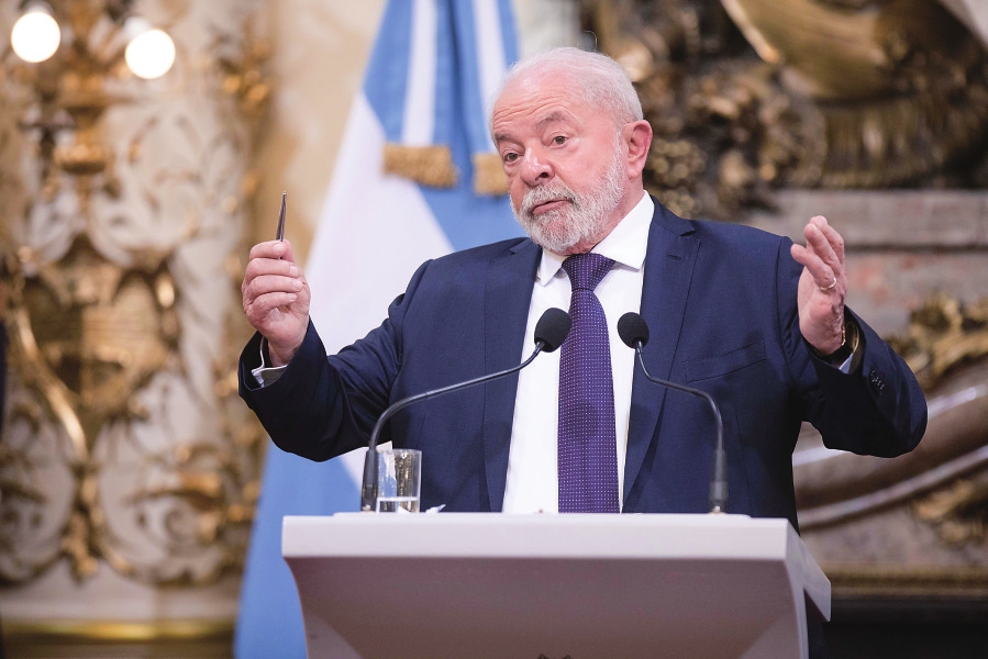 2023年1月23日,在阿根廷布宜诺斯艾利斯,到访的巴西总统卢拉在玫瑰宫出席新闻发布会。新华社发(马丁·萨巴拉摄)