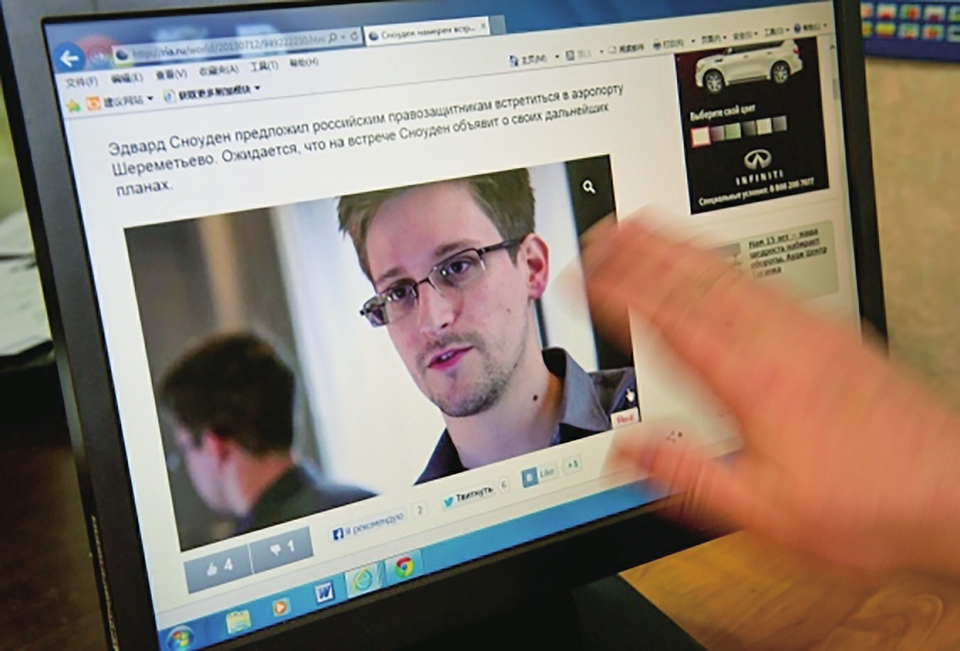2013年7月12日,新闻工作者在俄罗斯首都莫斯科打开网页浏览斯诺登的讯息。 新华社记者姜克红 摄