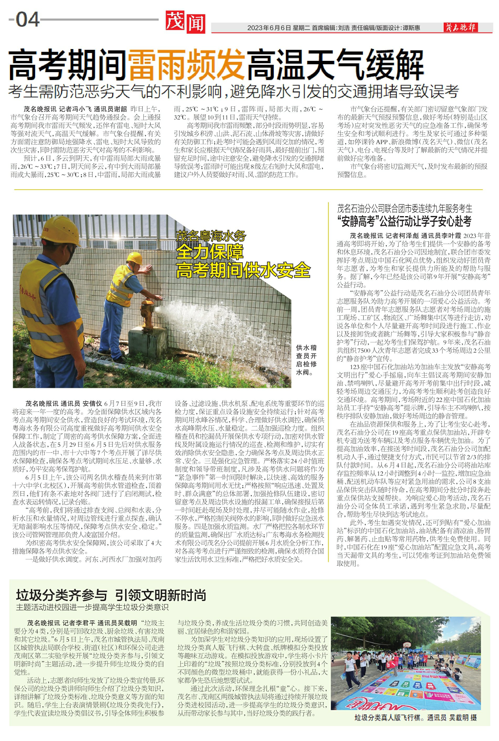 茂名粤海水务全力保障高考期间供水安全