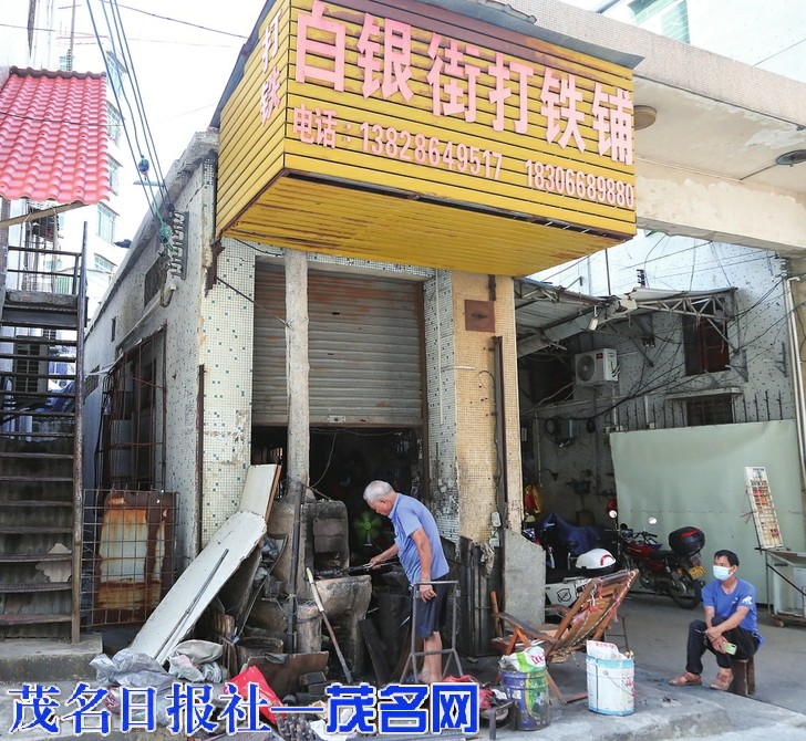 说起白银街,老茂名人一定都不觉得陌生,作为茂名最早一批的商业街,它曾给茂名人留下许多美好的记忆。说是一条街,实际却不足百米长,宽度也难以通过一辆小汽车,但在街道的两旁却开着餐饮店、粮油店、香料药材店、祭祀用品店等。在众多的店铺中,一间仅有13平方米的打铁铺是这里开得最久的店铺之一,任周围店铺几度易主,它都屹立不动。