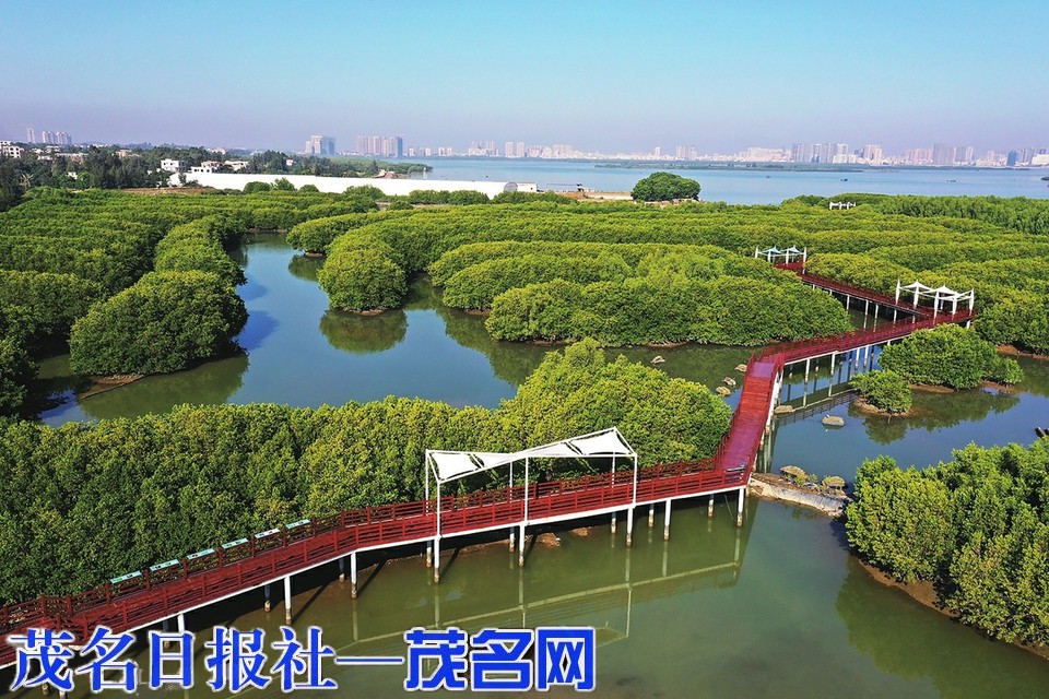 走在市区官渡一路、江东中路、油城四路等街道,映入眼帘的尽是耀眼的绿,仿佛要向你劈头盖脸地砸来。有时,明明烈日当空照,可走进巷子里却是绿荫遮阳,使人神清气爽。即使到城郊去,放眼望去也都是大片大片的绿。盛夏的露天矿生态公园生机勃勃草木葱茏,合水城市生态湿地公园的荷塘红绿相映,吸引游客冒烈日前来打卡。再远一点,来到水东湾红树林湿地公园,行走于栈道上,迎面扑来的不只是清风,还有那仿佛铺在海上的“绿毯”。要是到高州的笔架山、仙人洞和信宜的天马山、大雾岭等山岭、景区,深入茂名的青山绿水,那层层叠叠、目不暇接的绿,更是叫人如同置身于绿色海洋中。