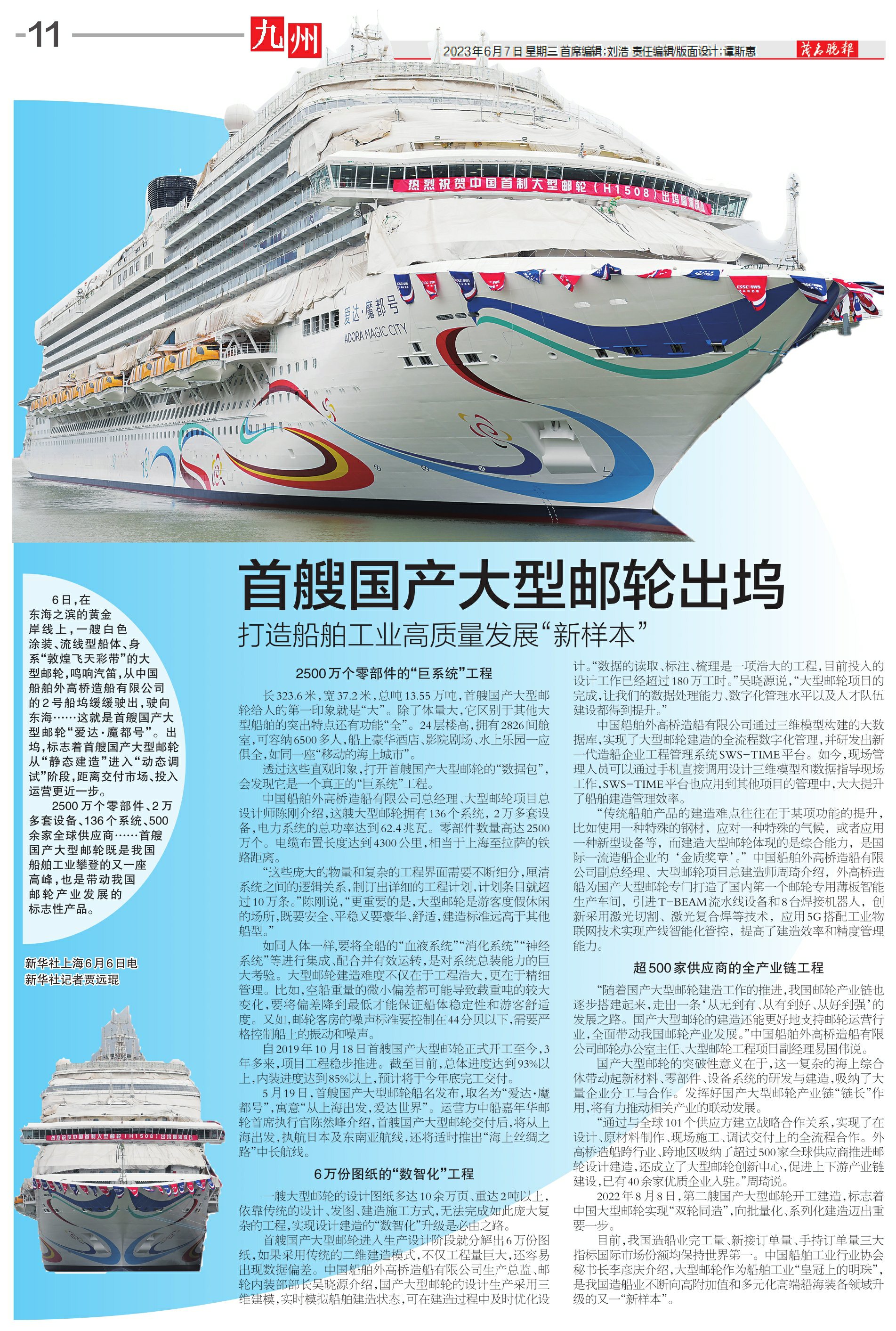 首艘国产大型邮轮出坞