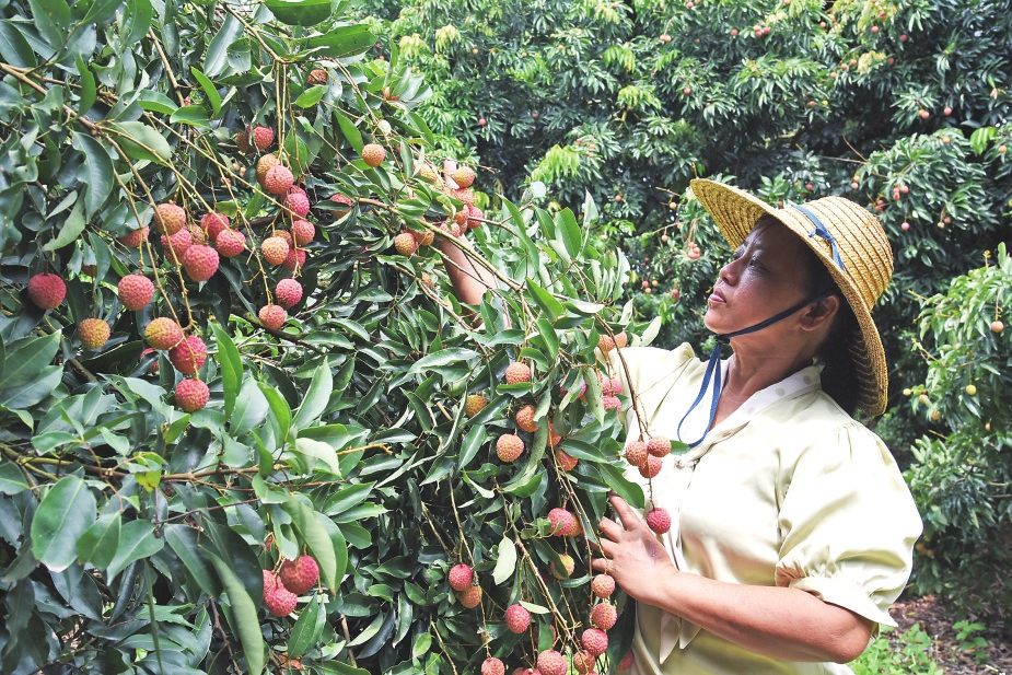 采摘荔枝。