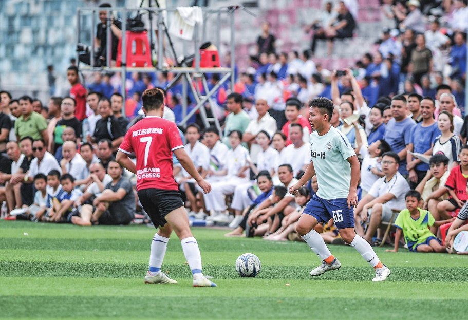 刚刚过去的这个周末,举行了“村超”自5月13日开打以来的第五轮比赛。刘义行每周都来看球,足球已成为他的“周末主题”。他说:“提前过来练球,完了再看比赛,感受人山人海的足球氛围,超级赞!”